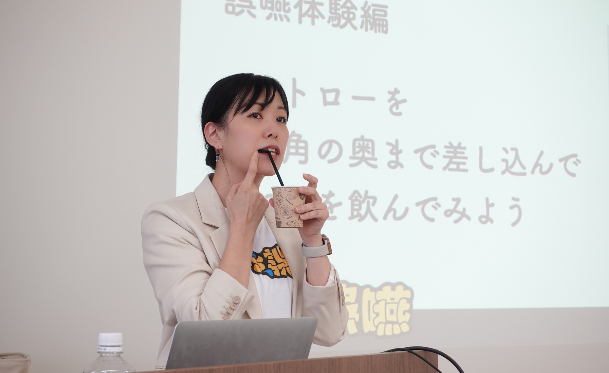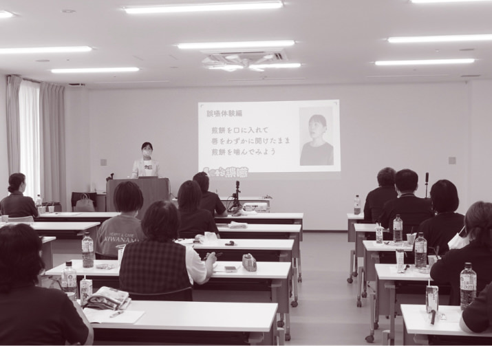 一見、不真面目な名前とは裏腹に、全国各地で誤嚥予防ケアを簡単に学べ、すぐ実践できるワークショップとして注目を集めています。実際に「誤嚥」を体験してみることで、どんなときに起きるのか? どうやって防げるのか?を身をもって知ることができると、そのリアルな学びは毎回大きな反響を呼んでいます。